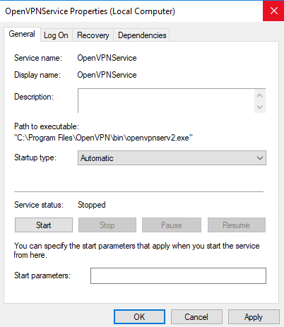Find the OpenVPN service, and set its Startup Type to “automatic.”