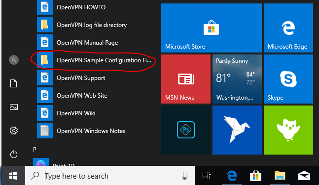 Start Menu > All Programs > OpenVPN > OpenVPN Sample Configuration Files