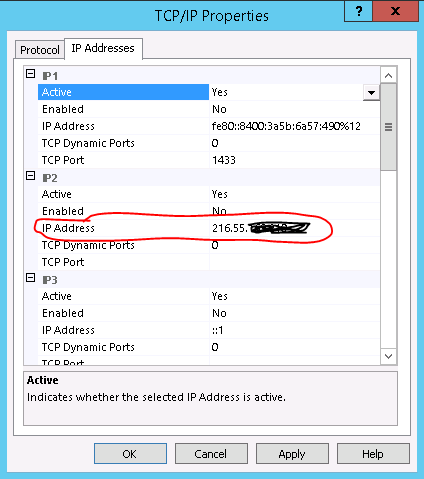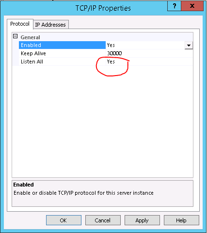 Make sure TCP/IP is enabled. Right-click on TCP/IP and select Properties.