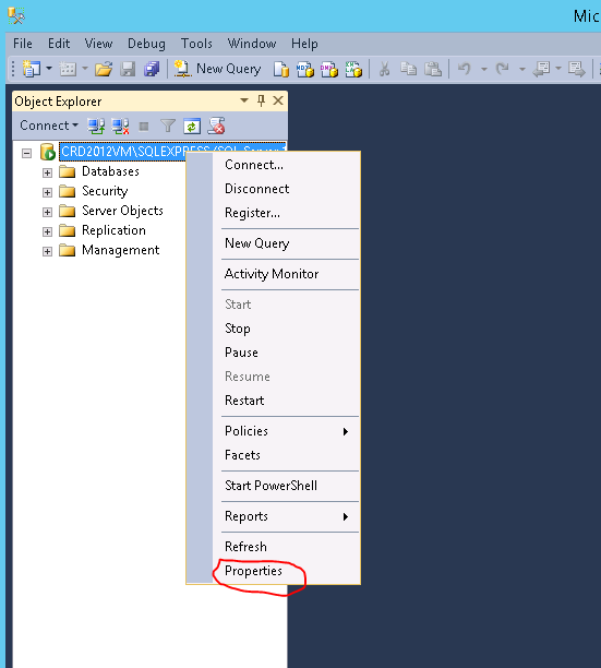 Open SQL Server 2008 Management Studio, connect to the server in question, right click the server.