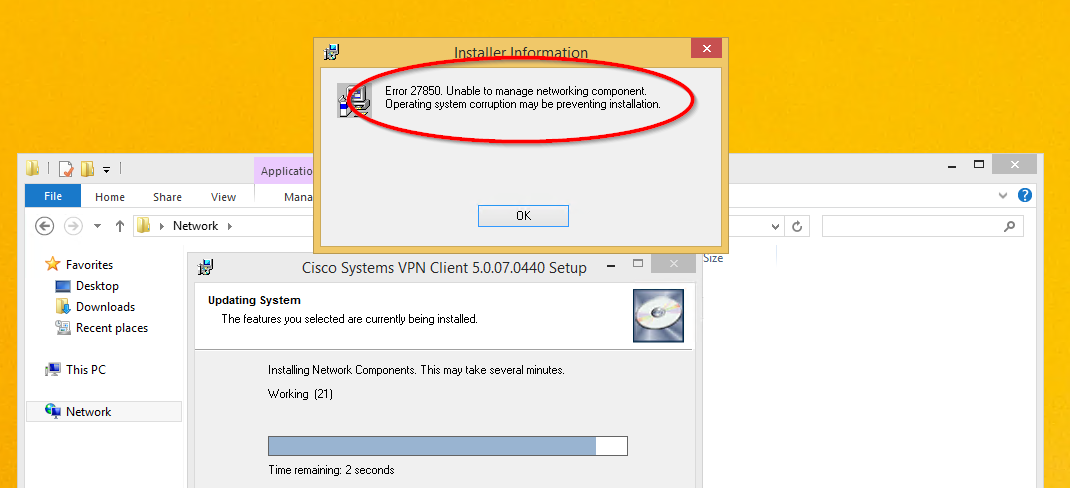 Cisco IPSec VPN Client is not supported on Windows 8 or Windows 10 and Error 27850