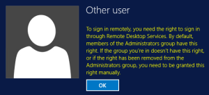 Are you having trouble accessing your Windows Server 2012 machine using remote desktop, even after adding the user to the Remote Desktop Users group? Remote Desktop appears to accept the login credentials but then you receive the following error message: