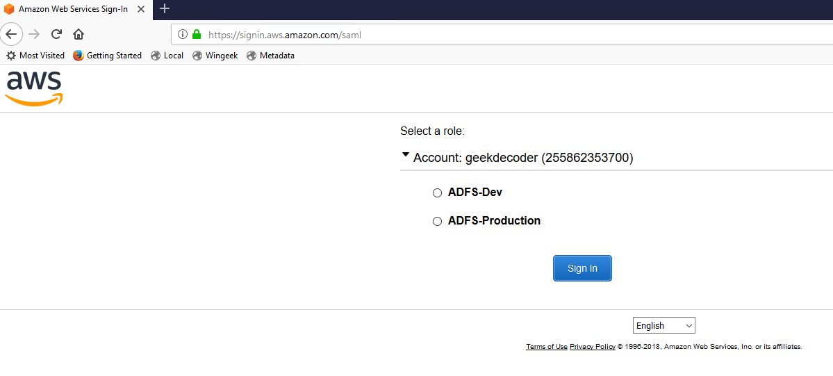 Select a role and then click Sign In. (If you are mapped to only a single IAM role, you skip the role selection step and are automatically signed into the AWS Management Console.).