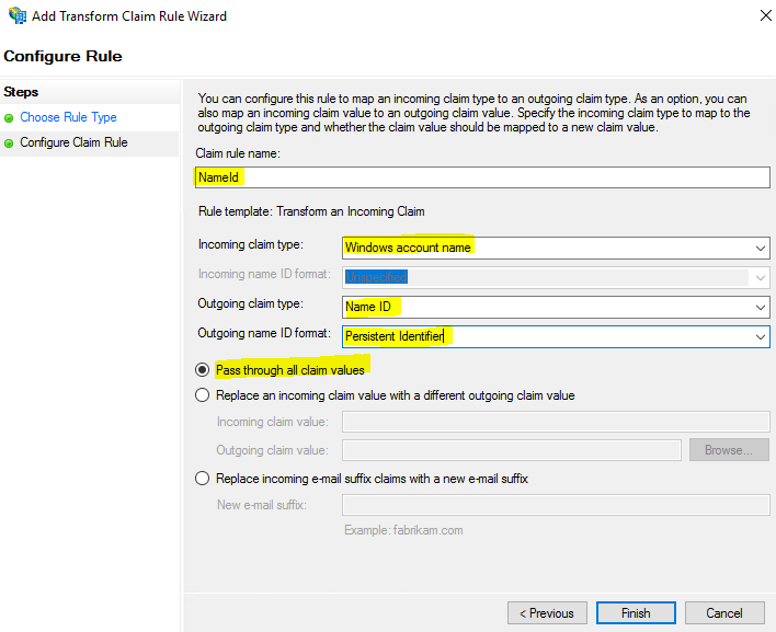 Make sure “Configure claims issuance policy for this application” is check on and click Close.