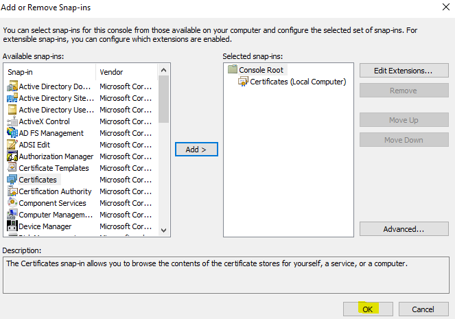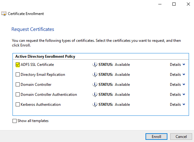 Installing Enterprise CA for Active Directory Federation Services