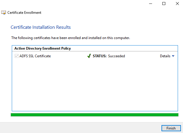 The ADFS service will need a certificate. Follow the steps below to configure the SSL certificate.