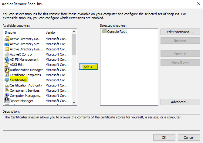 Select “Certificates” > “Add”.