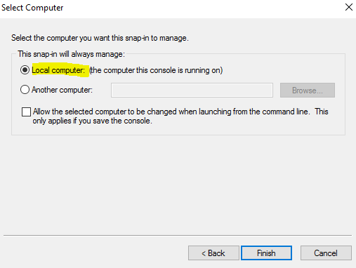 Select “Local Computer”. Then “Finish”.