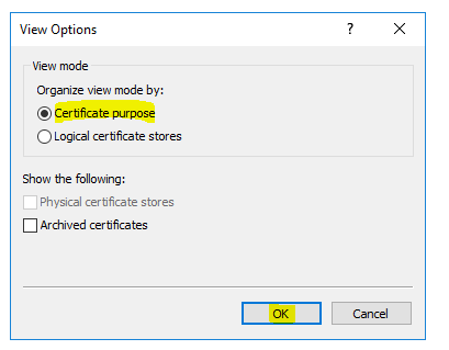 Select “Certificate Purpose” and then “OK”.