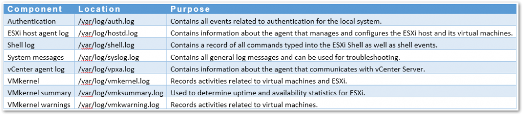 In addition to the above, every Virtual Machine hosted on ESXi will have corresponding VM log files called vmware.log recording events related to machine activity, system failures, hardware changes, migrations, status and so on. To view the log file, SSH to the ESXi host and navigate to the datastore on which the VM folder resides.