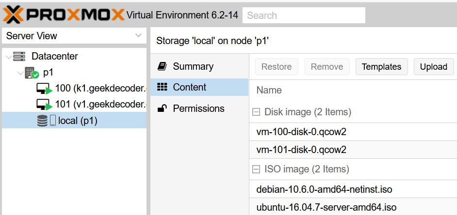 After the upload, you can see the new ISO in the GUI at p1 > local (storage) > Content.