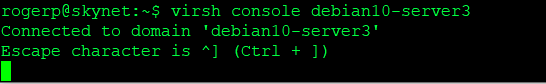 $ sudo virsh console debian10-server3 Connected to domain centos8 Escape character is ^]