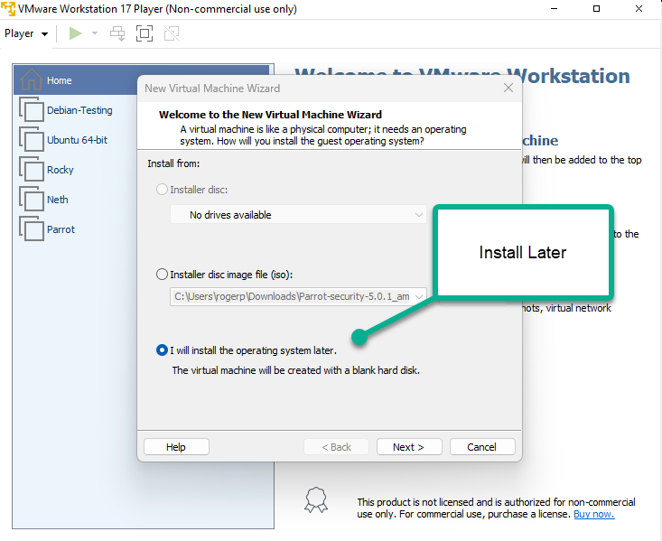 VMware is installed at:  C:\Program Files (x86)\VMware\VMware Player\