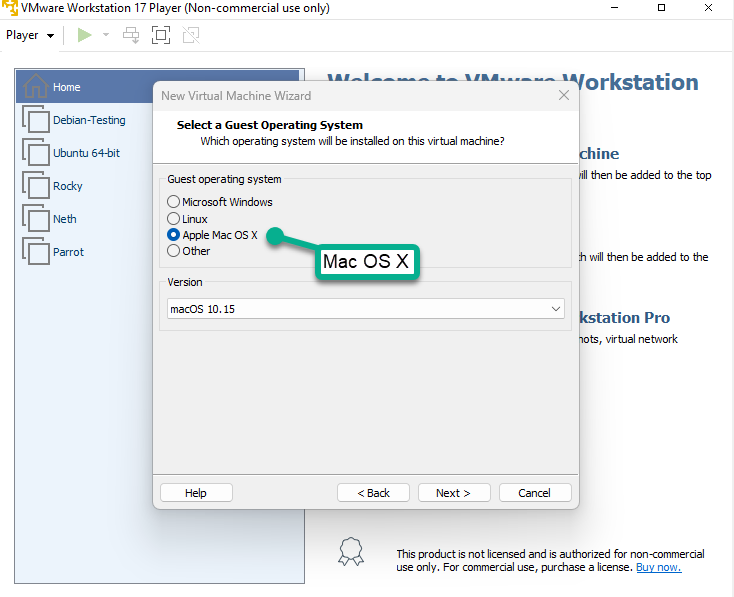 1. Open VMware and on the macOS Catalina VM window Click Power on this Virtual Machine.