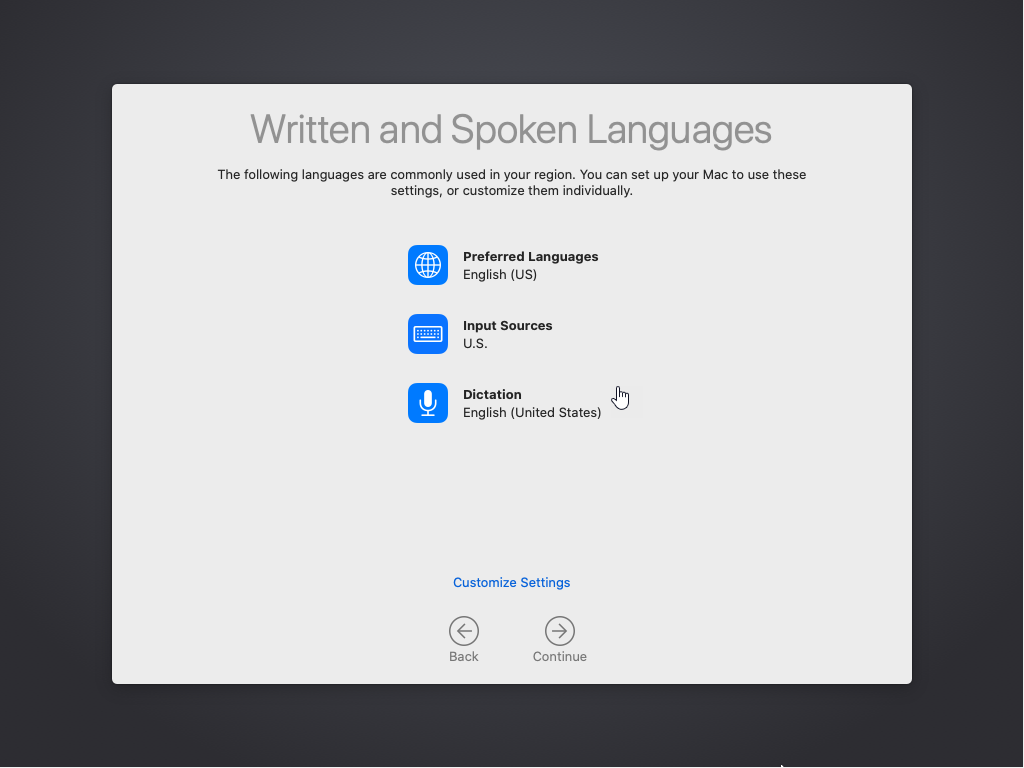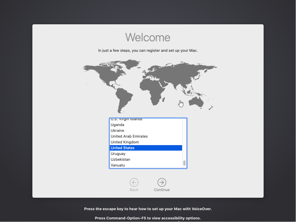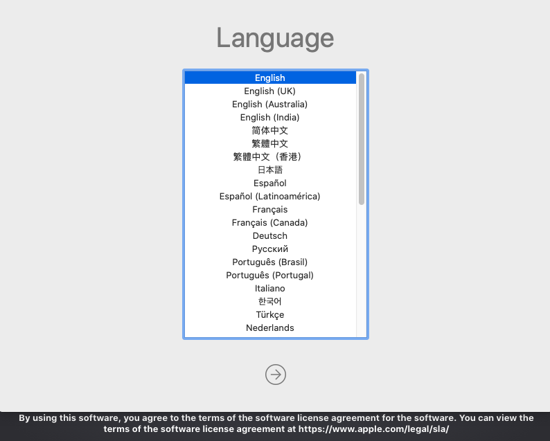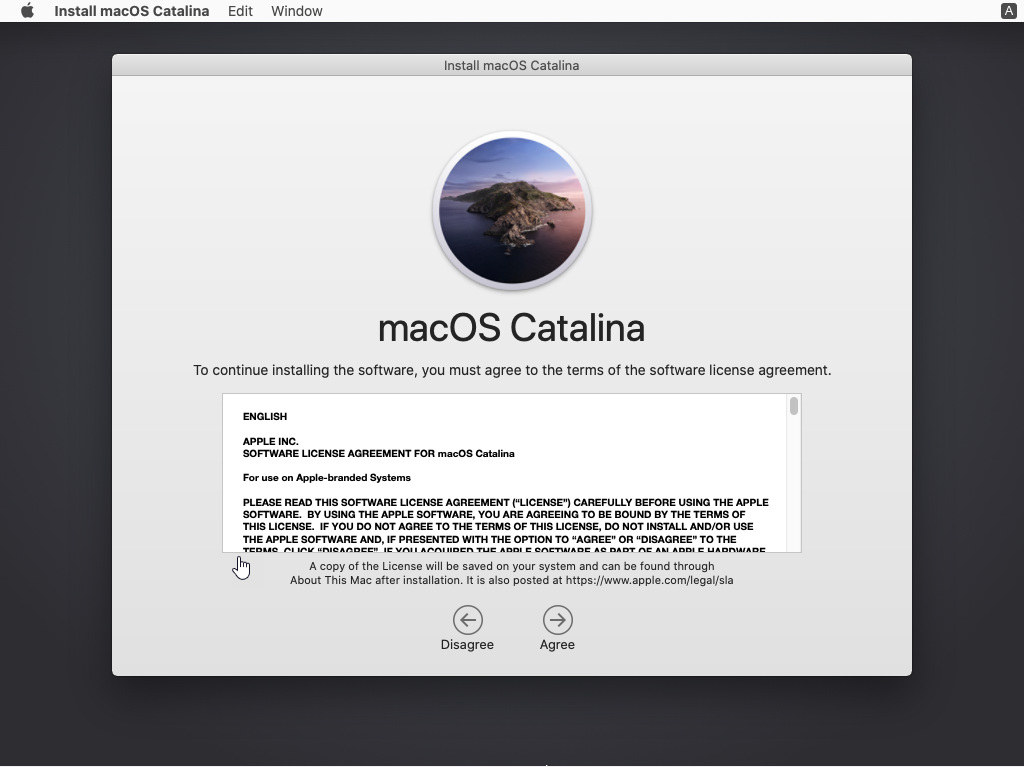 Once the installation part complete, the VM will reboot, and after the reboot, you should see macOS Catalina Welcome page. Complete the setup as needed.