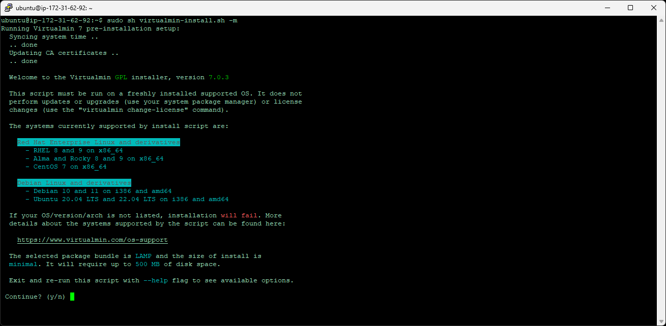 For this install I am going to run the standard LAMP install. I am installing on an AWS EC2 instance that is 1GB RAM and 1vCPU. So I am using the minimal install for low-memory/low-resource systems.